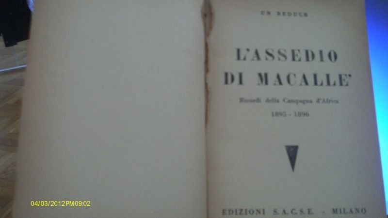 L'ASSEDIO DI MACALLE' RICORDI DELLA CAMPAGNA D'AFRICA 1895 1896 EDIZIONI SACSE 1935