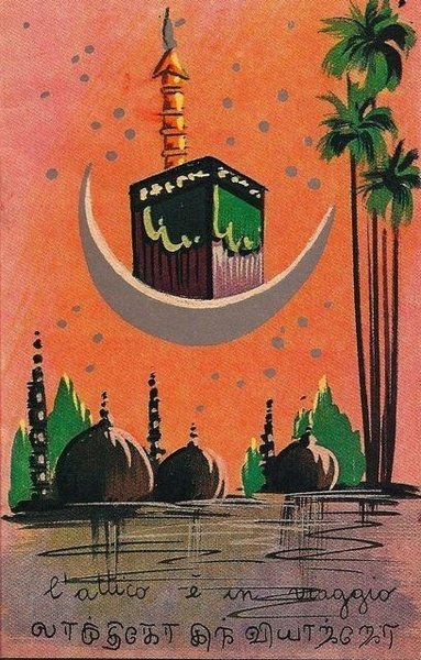 "A Madras Francesco Clemente commissiona dei disegni a degli artisti indiani e li espone in un alberghetto della città; Giordano Falzoni coinvolge in una festa danzante il pubblico indu; Luigi Ontani esegue un tableau vivant: inghirlandato di fiori posa in piedi su una statua lignea di Ganesh, un dio mitologico indiano dalla testa di elefante; Fabio Sargentini naviga la costa indiana a cento metri dalla riva. Ne nasce questo piccolo catalogo che viene stampato in India e spedito in occidente" (Giorgio Maffei) — F.to: 9x13,5; pagg. 8; rileg. Punto metallico. Editore: Fabio Sargentini, Madras, 1977.