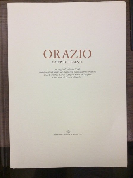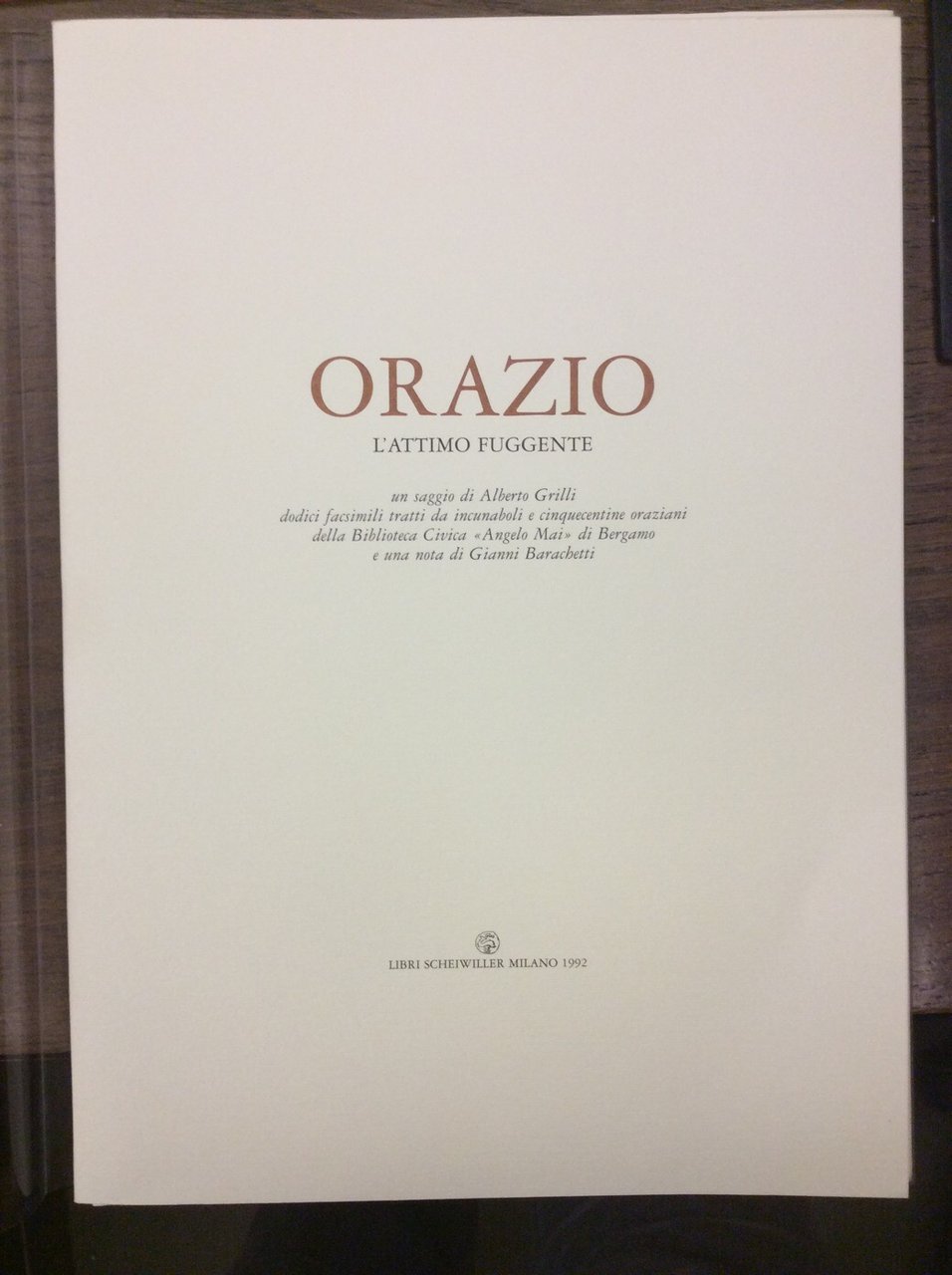 L'ATTIMO FUGGENTE. - Un saggo di Alberto Grilli, dodici facsimili tratti da incunaboli e cinquecentine oraziani della Biblioteca Civica Angelo Mai di Bergamo e una nota di Gianni Barachetti.