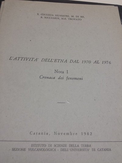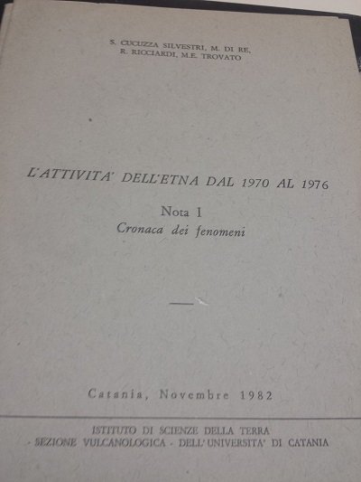 L'ATTIVITA DELL'ETNA DAL 1970 AL 1976 NOTA I CRONACA DEI FENOMENI