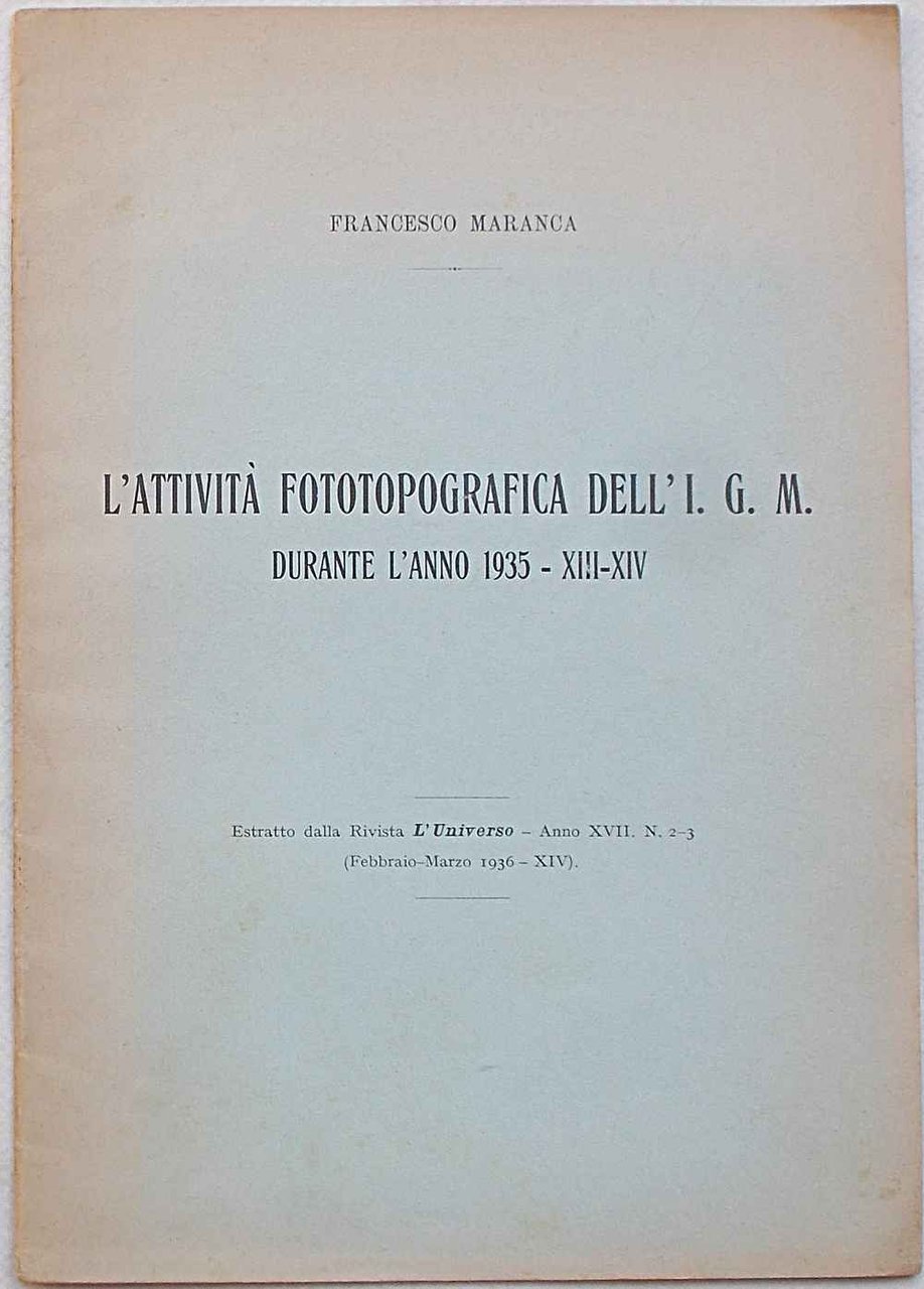 In 8° (cm. 24 x 17); pagg. 16; con 4 carte geografiche (una delle quali a colori) f.t. e alcune illustrazioni anche fotografiche n.t.; leggera cartonatura originale. VG. ** Estratto originale dalla rivista "L'Universo".