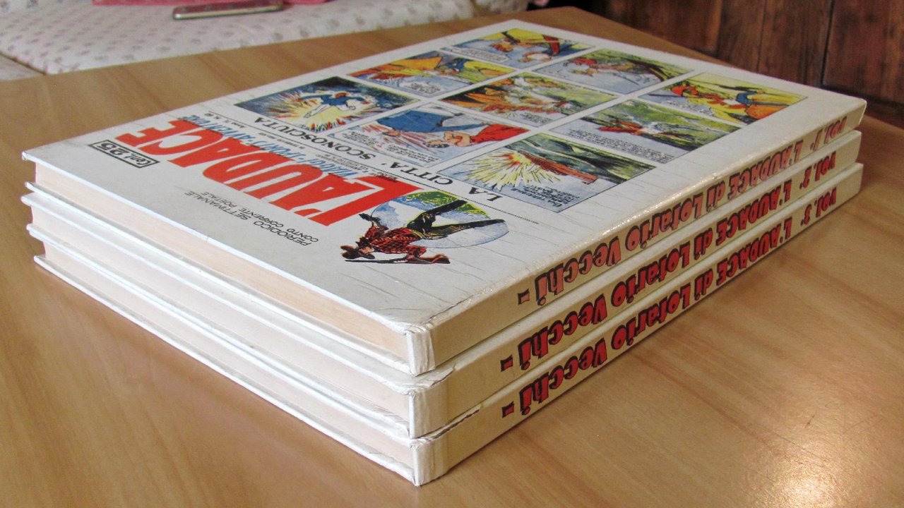 Vol. I° dal n.60 al n.79 del 1935; Vol. II° dal n.80 al n.99 del 1935; Vol. III° dal n.100 al n.119 del 1935/36. Editrice Comic Art - Roma, 1977/'79. Cartonati editoriali con imperfezioni al margine alto dei dorsi. Peraltro Ottimi. 28,5x41. Quasi Ottimi , Molto buono (Very Good)