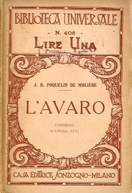 93 p. ; 17 x 12 cm. Biblioteca universale Sonzogno, 408. La commedia viene messa in scena per la prima volta da Molière al Palais Royal con quella che fin dal 1665 si chiama Compagnia Reale (“Troupe du Roi”) il 9 novembre del 1668, accolta con più che discreto successo, che si fa piuttosto mediocre nelle repliche successive. Ma, nel tempo, dalla morte dell’autore fino ai nostri giorni, l’opera ottiene sempre più vasti consensi di attori e di pubblico. La commedia è in cinque atti, come di consueto per Molière, ma scritta, come poche altre, in prosa e in diverse parti, nelle scene e nei personaggi, si ispira a modelli di un passato recente e lontano. Brossura editoriale, coperta in carta illustrata con fregi, titolo impresso al piatto e al dorso. Segni del tempo alla carta (ingiallimento), stappo al piatto della coperta, per il resto libro integro. Codice libreria 6779.