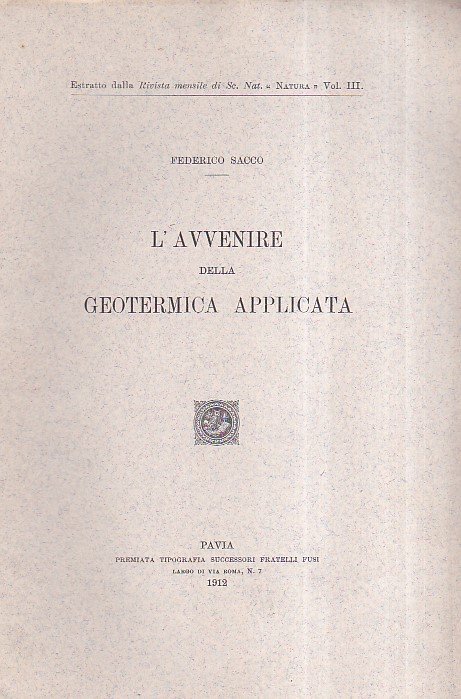 L'avvenire della geotermica applicata. Estratto dalla Rivista mensile di Scienze Naturali 'Natura'. Vol. III