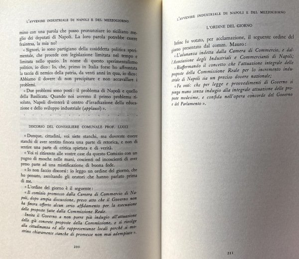 Quando la legge speciale per Napoli fu varata nel 1904, l'interesse dell'opinione pubblica nazionale a quell'importante provvedimento non fu minore di quello ovviamente manifestatosi a livello locale. Era il primo provvedimento di una consapevole e specifica politica di industrializzazione che si sperimentasse in Italia, e i precedenti non erano molti neppure fuori l'Italia.