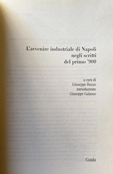 L'AVVENIRE INDUSTRIALE DI NAPOLI NEGLI SCRITTI DEL PRIMO '900. A CURA DI GIUSEPPE RUSSO