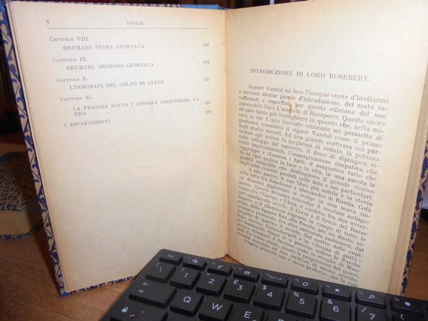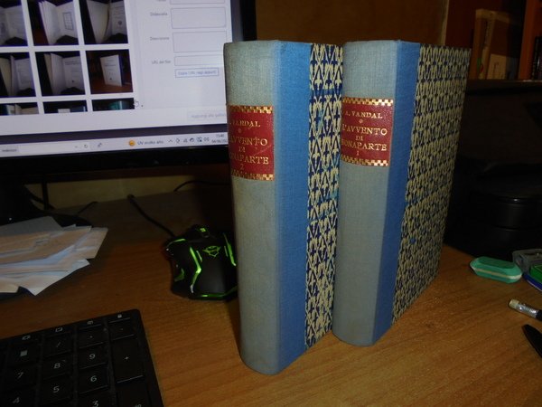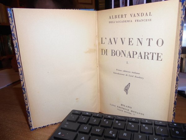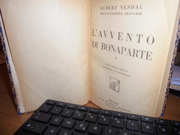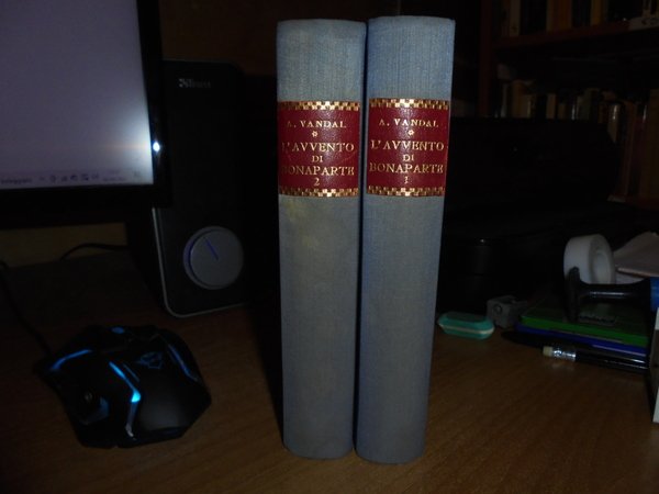 ALBERT VANDAL. Milano, Casa Editrice Monanni, 1931. L' Avvento di BONAPARTE. Prima edizione italiana. Introduzione di Lord Rosebery. 2 volumi in-16°, m. tela con titoli in oro entro tasselli ai dorsi. 415 pp.; 415 pp. Volumi con normali segni del tempo. Uff. stanzetta mob. sinistra III - 4 carc.