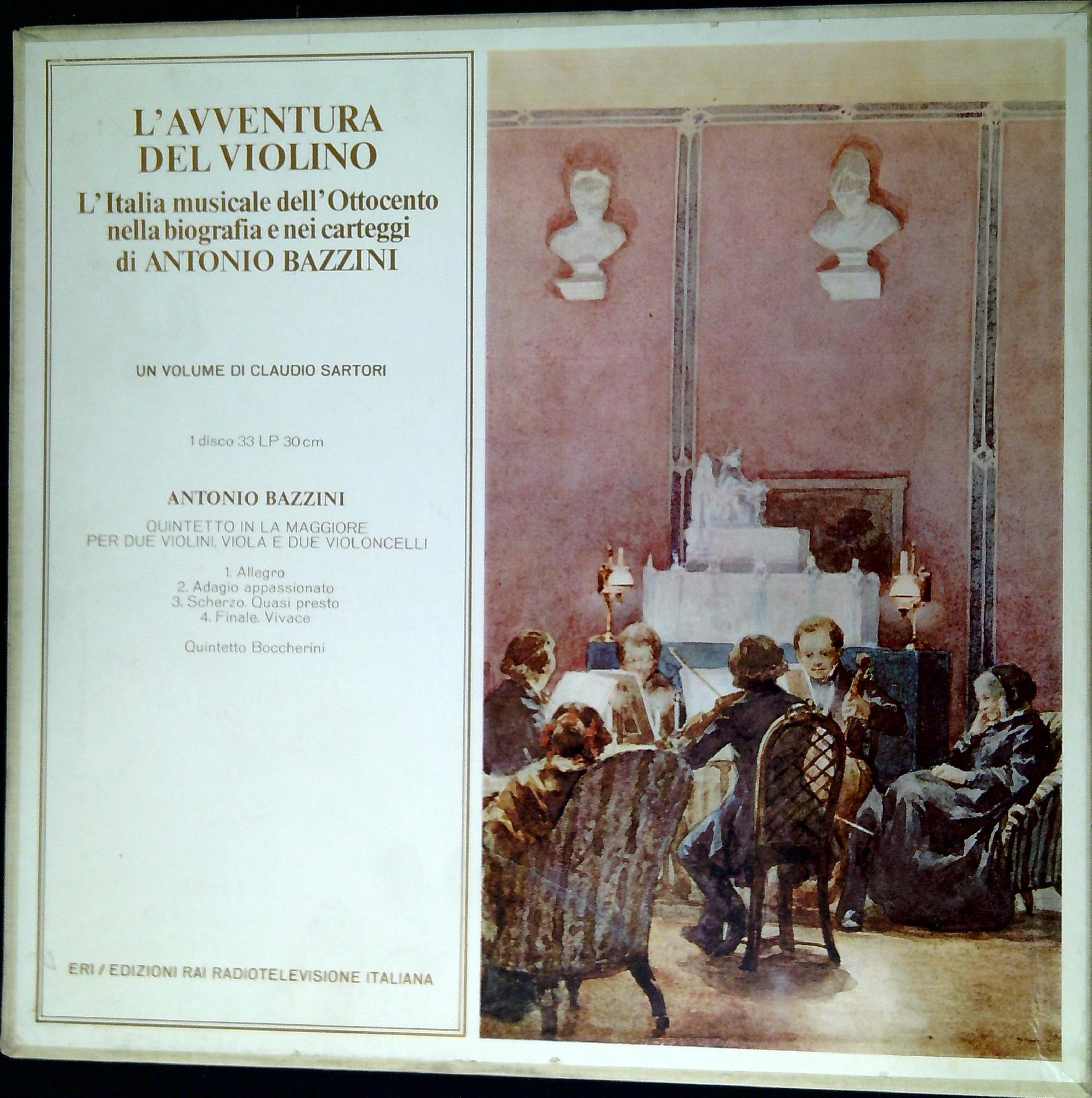 Sartori, Claudio L' avventura del violino : l'Italia musicale dell'Ottocento nella biografia e nei carteggi di Antonio Bazzini. Torino, ERI 1978, 493 p. ; 21 cm Un volume e un disco Lp 33 giri in custodia. (52140)