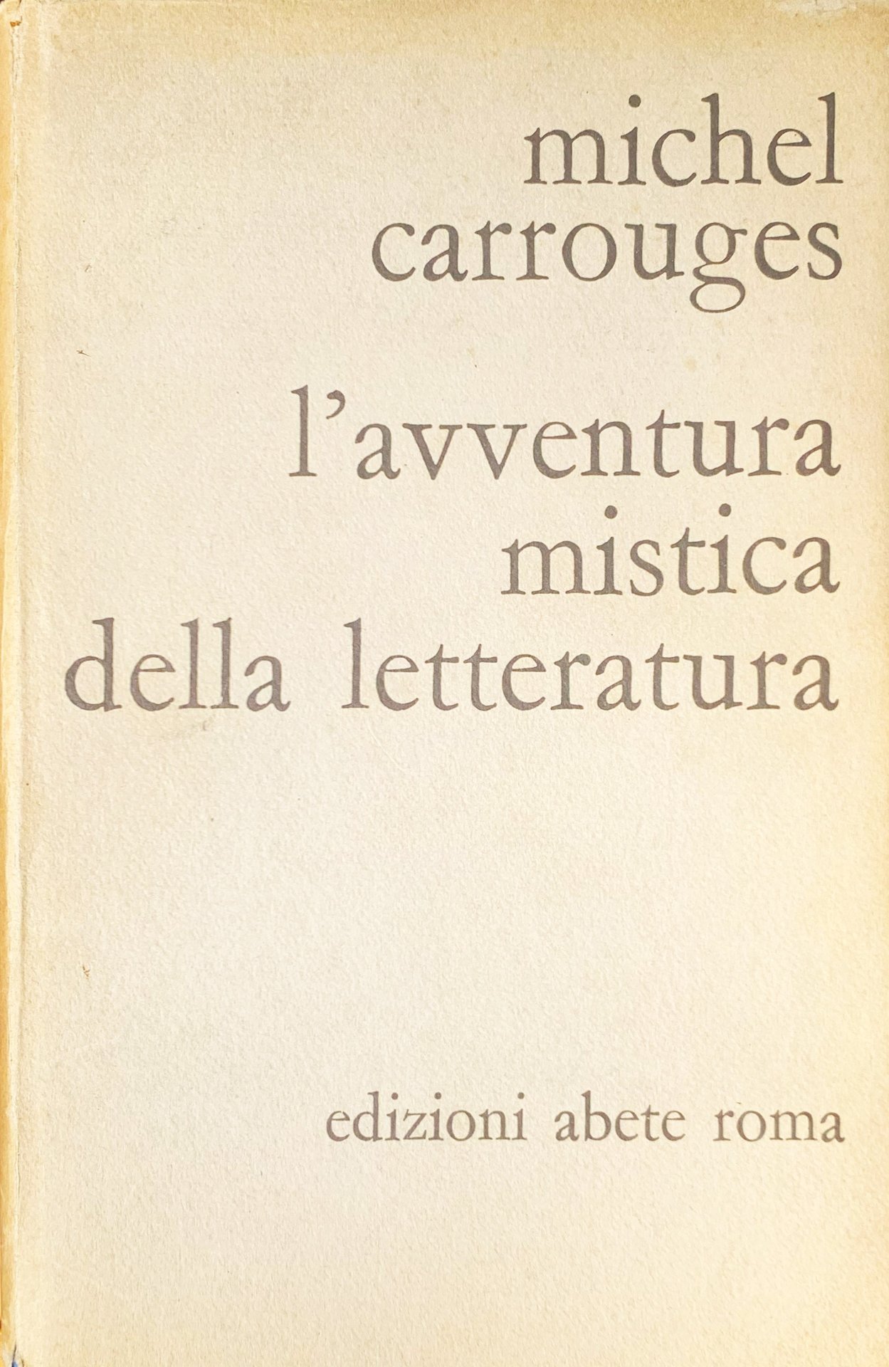 I ed. italiana (I ed.: Paris, Librairie Gallimard 1948. Trad. Renata Gradi). Col,lezione diretta da Pietro Prini "Studi Contemporanei", vol. 3. In-8, pp. 488, cart., sovracc. Stato buono (stato d'uso della sovraccoperta che si presenta consunta ai margini, anche con qualche piccolo strappo, e brunita in particolare al dorso e ai margini - due righe sottolineate nell'indice a matita con punta grassa non calcata). Indice: Introduzione (La letteratura profetica) - L'escatologia dell'ateismo mistico (Il superyuomo e la morte di Dio (Il panteismo di Hegel e il sovvertimento della teologia-La filosofia dell'ateismo prometeico (Nietzsche, Dostoevskij e Bataille; Feuerbach e Marx)-La poesia dell'ateismo prometeico (Jean Paul e Nerval; Mallarmé e Baudelaire; Lautréamont, Kafka e alcuni altri)) - Il caos (L'apoteosi della negazione-Il caos e il nuovo cosmo) - La metamorfosi (Il principio della metamorfosi-L'uomo sotterraneo-Il corpo di gloria) - Il wonderland (L'emisfero notturno e sotterraneo-L'emisfero diurno e celeste (Babele, la natura magica, l'umanizzazione della natura, l'immersione deificante))) - La pratica della deificazione dell'ateismo mistico (La carne si è fatta Verbo - Il sogno - L'istante magico - L'hybris - L'assalto del firmamento (La rivoluzione materiale e sociale-La rivoluzione fisiologica-La rivoluzione psichica)) - Il significato dell'ateismo mistico (Saggio sulla simbologia generale della deificazione (Simbologia egiziana-Simbologia indiana e tibetana-Simbologia cinese-Simbologia dei misteri greci-Prospettive generali del simbolismo)- Saggio sulla pratica generale della deificazione (Il Verbo-L'hybris-L'assalto del firmamento)- La simbologia ebraico-cristiana - La cosmologia ebraico-cristiana - La poesia prometeica e la realtà (Il supplizio di Tantalo-Critica della filosofia comune-Critica dello pseudo-potere divino attribuito alla poesia) - La poesia prometeica e la religione (Problema del campo mistico-Problema dell'autodeificazione)- L'avvenire dell'ateismo (L'apogeo dell'umanità nell'ateismo-Le forze indistruttibili della fatalità. L'identità, la libertà e la discordia)- Edipo e Narciso o la patologia dell'ateismo (Edipo-Narciso) - La colomba e il dragone: pneumatologia dell'ateismo mistico).