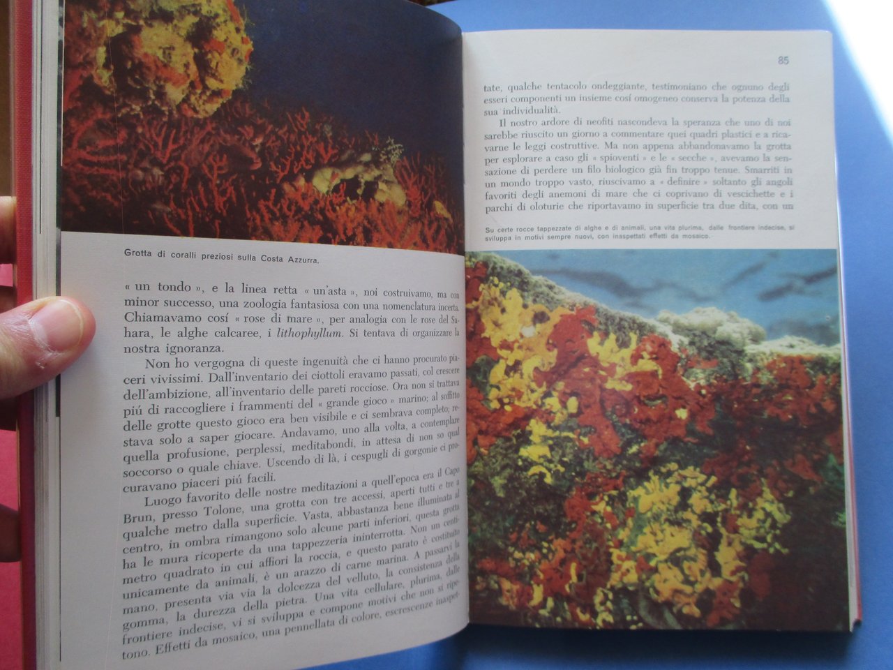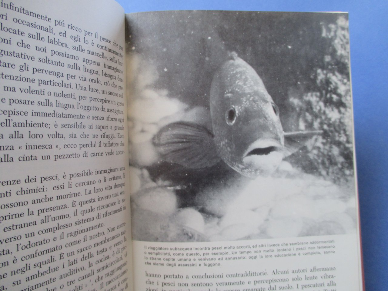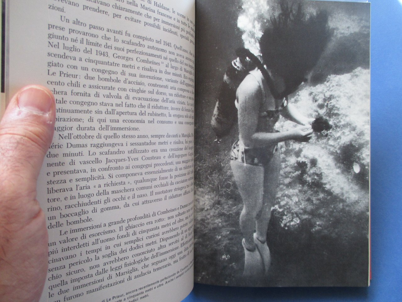 In - 8vo, copertina rigida in tela, sovraccoperta illustrata in acetato trasparente, pp. 247 ( 5 ). Prima edizione. Con numerose foto in nero e a colori. Collana " Nuova Atlantide ". Indice dei capitoli: Battesimo dell'acqua - La conquista delle profondità - Incontri -Grotte marine - Addomesticamento - Nozze - L'alga vergine - Sensibilità sottomarina - Musei in fondo al mare - Le tappe del mare.