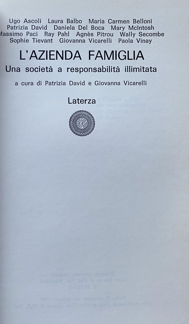 Titolo: L'Azienda Famiglia. Una società a responsabilità illimitata