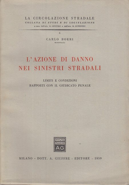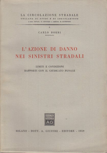 In-8 (Cm 25,2 x 17,8), pp. 286, brossura editoriale. Collana "La circolazione stradale, 6". Ordinari segni del tempo. MOLTO BUONO