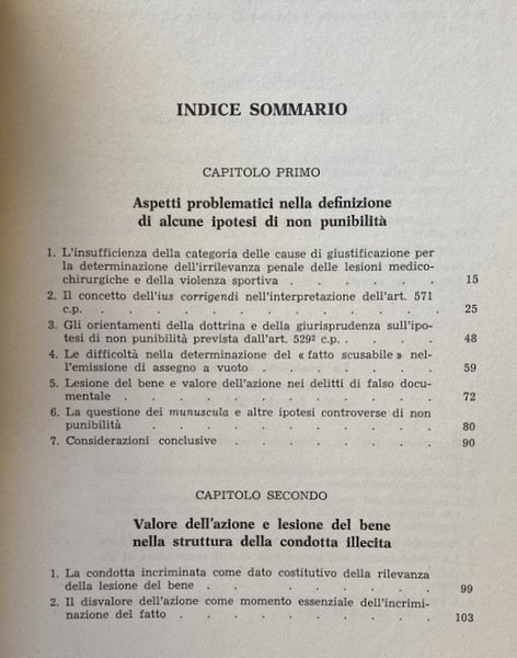 Il contrasto in cui vengono a trovarsi la giurisprudenza e la dottrina nella definizione di queste ipotesi di non punibilità e il disagio che ne deriva nell'ordine della certezza non è dovuto tanto all'insufficienza della categoria delle cause di giustificazione, quanto ad una concezione unilaterale dell'oggetto della tutela, che impedisce di cogliere il significato nel quale deve essere valutata l'idoneità dell'azione a costituire un comportamento effettivamente lesivo del bene tutelato dalla norma.