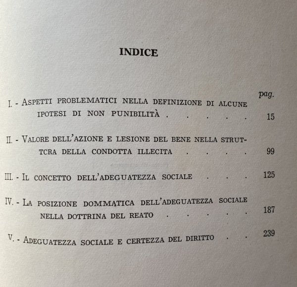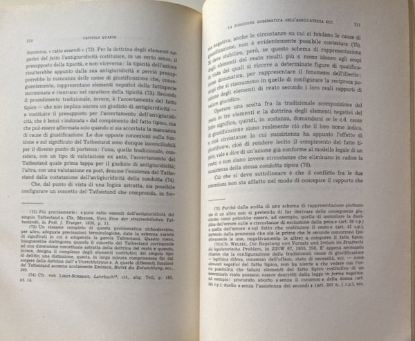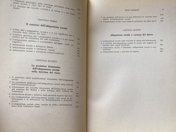 Soggetti: Giurisprudenza, Diritto penale, Codice, Legge, Reato, Non punibilità, Procedura penale, Saggi critici, Manuali, Studi giuridici, Riferimento, Bibliografia, Consultazione, Opere giuridiche, Remo Pannain, Letteratura giuridica, Filosofia del diritto, Diritto costituzionale, Fascismo, Diritto Romano, Diritto internazionale, Lezioni, Teoria, Teorie giuridiche, Reati, Dottrina, Consuetudine, Limiti, Incriminabilità, Sciopero, Disturbo alla quiete pubblica, Manifestazioni collettive, Rischio, Pena, Certezza, Tutela, Giustificazione, Idoneità, Azione, Orientamento, Dottrina naturalistica, Condotta lesiva, Danno, Aggressione, Rilevanza, Divieto, Incriminazione, Tradizione, Revisione, Bene giuridico, Lesione, Società, Adeguatezza sociale, Norma, Interpretazione, Efficienza, Portata, Previsione normativa, Bene tutelato, Valore, Giudizio, Etica sociale, Comportamento pregiudizievole, Causa, Giustificazione, Hans Welzel, Sozialadäquanz, Soziale Adaquanz, Tipicità, Giudice, Logica, Principio di legalità, Illecito, Ius corrigendi, Munuscula, Disvalore, Condotta illecita, Articolo 571, Fatto scusabile, Assegno a vuoto, Falso documentale, Controversie, Limiti teorici, Dolo, Colpa, Fattispecie dolose, Agire, Normalità, Posizione dommatica, Unerchtstatbestand, Pensiero giuridico, Tatbestand, Elementi negativi del fatto, Sozialkongruenz, Errore, Ordinamento, Concetti, Regole, Leggi, Legislatore, Sentenze, Scopo, Franz von Liszt, Collezionismo, Libri rari, Libri Vintage Fuori catalogo, Diritto penale tedesco, Attribuzione oggettiva, Rischio consentito, Restrizione teleologica, Omissione, Garante, Bandiera, Germania, Punizione, Reato amministrativo, Illecito amministrativo, Sport, Felix Ruppert, Dreher, Tröndle, Serrata, Accettabilità sociale, Pratica, Colonia, Corte penale, Tribunale, Corruzione, Simbolo, Vorteilsannahme, Knowles, Shorter, Tilly, Proporzionalità, Esiguità, Strafrechtssystem, Giusnaturalismo, Scuola napoletana, Sergio Moccia, Dario Santamaria, Massimo Donini, Causalismo, Esser, Schonfeld, Benedetto Croce, Neohegelismo, Diritto positivo, Kienappel, Beling, Lange, Italia, Sistema penale italiano, Anni Sessanta, Graf Zu Doha, Articolo 397, 546, 396, 659, 660, 529, Strafrecht, Vita sociale, Astrattezza, Peculato, Abuso, Mezzi di correzione, Educazione, Intenzionalità, Manzini, Califano, Cassazione, Elemento psicologico, Spionaggio, Sabotaggio, Micheli, De Marchi, Wurtenberger, Lesioni, Violenza, Vessazione, Zielkongruenz, Congruenza, Entità, Jurisprudence, Criminal law, Code, Law, Offense, Non-punishment, Criminal procedure, Critical essays, Manuals, Legal studies, Reference, Bibliography, Consultation, Legal works, Legal literature, Philosophy of law, Constitutional law, Fascism, Law Roman, International law, Lessons, Theory, Legal theories, Crimes, Doctrine, Customs, Limits, Incriminability, Strike, Public peace disturbance, Collective manifestations, Risk, Punishment, Certainty, Protection, Justification, Suitability, Action, Orientation, Naturalistic doctrine, Harmful conduct, Damage, Aggression, Relevance, Prohibition, Incrimination, Tradition, Revision, Legal good, Injury, Society, Social adequacy, Standard, Interpretation, Efficiency, Scope, Normative forecast, Protected property, Value, Judgment, Social ethics, Behavior prejudicial, Cause, Justification, Typicality, Judge, Principle of legality, Illicit, Disvalue, Illicit conduct, Bad check, False documentary, Disputes, Theoretical limits, Dolo, Guilt, Willful offenses, Act, Normality, Dogmatic position, Legal thinking, Negative elements of the fact, Error, Ordering, Concepts, Rules, Laws, Legislator, Judgments, Purpose, Collecting, Rare books, Out of print books, German criminal law, Objective attribution, Permitted risk, Teleological restriction, Omission, Guarantor, Flag, Germany, Punishment, Administrative offense, Administrative offense, Lockout, Social acceptability, Practice, Cologne, Court Criminal law, Corruption, Symbol, Proportionality, Smallness, Natural law, Neapolitan school, Causalism, Positive law, Italy, Italian penal system, Sixties, Social life, Abstractness, Peculated, Abuse, Means of correction, Education, Intentionality, Cassation, Psychological element, Espionage, Sabotage, Injuries, Violence, Harassment, Congruence, Entity