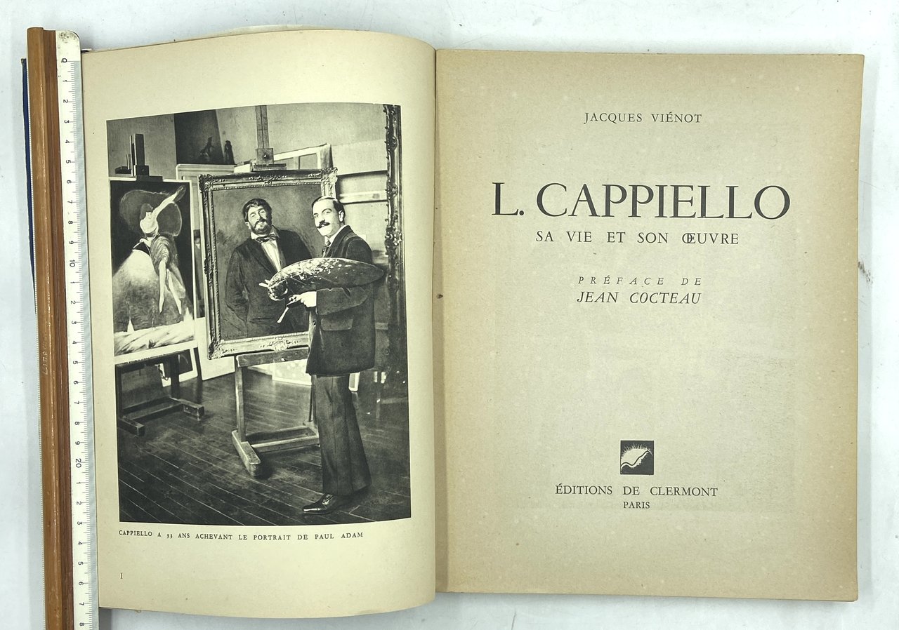 Brossura editoriale con sovraccoperta, cm 28 x 22, pp 144 (2), alcune illustrazioni in nero nel testo e LII tavole a colori e in nero. Testo in francese. Internamente ben conservato, sovraccoperta un po' sciupata e con mende al verso lungo i margini, bruniture sul dorso. Discreto esemplare nel complesso. Importante monografia sul maestro dell’affiche Leonetto Cappiello (Livorno 1875 - Cannes 1942), redatta da Jacques Viénot (fondatore dell’Institut Français du Design) poco dopo la morte del grande cartellonista italiano. Nato a Livorno nel 1875 e trasferitosi in Francia alla fine del XIX Secolo, Cappiello trovò dapprima il successo come caricaturista collaborando a Le rire, Le sourire, Le cri de Paris e altri periodici e pubblicando alcuni fortunati album; fin dal 1900 si dedicò alla realizzazione di manifesti per le maggiori stamperie francesi (Vercasson, Imprimeries réunies, Devambez), affermandosi rapidamente come uno dei più grandi artisti dell'epoca d'oro dell'affiche e firmando alcune tra le più celebri immagini pubblicitarie degli anni '20 e '30 per Campari, Cinzano, Thermogène, Dubonnet, Job, Nil, ecc. Il volume, tirato in 2975 copie, ripercorre la carriera artistica di Cappiello illustrando la produzione di caricature, manifesti, dipinti e disegni con riproduzioni in nero e a colori. Prefazione di Jean Cocteau, elenco dei personaggi ritratti in caricatura, cronologia artistica.