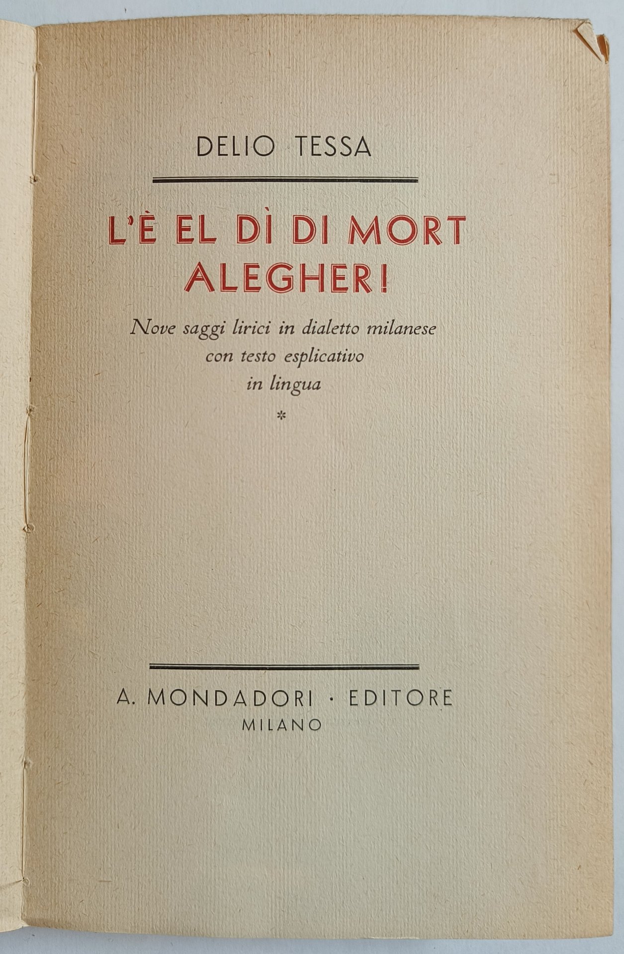 Delio Tessa, L'è el dì di mort, alegher! Nove saggi lirici in dialetto milanese con testo esplicativo in lingua. Arnoldo Mondadori Editore, Milano, 1932.