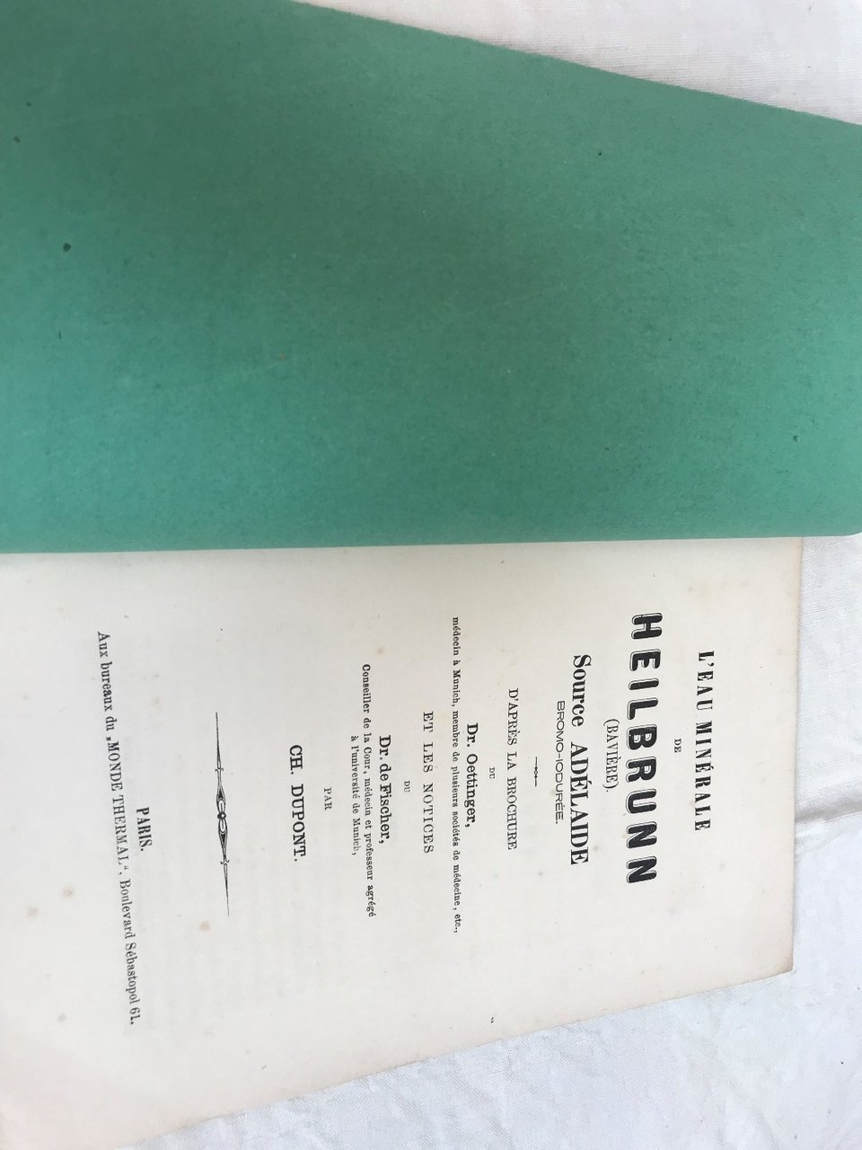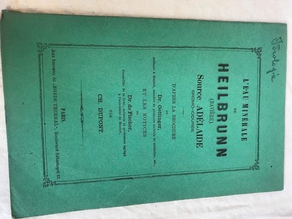 L' EAU MINERALE DE HEILBRUNN (Baviere). SOURCE ADELAIDE. Bromo-ioduree. D'apres la brochure du Dr. Oettinger ., et le notices du Dr. De Fischer .