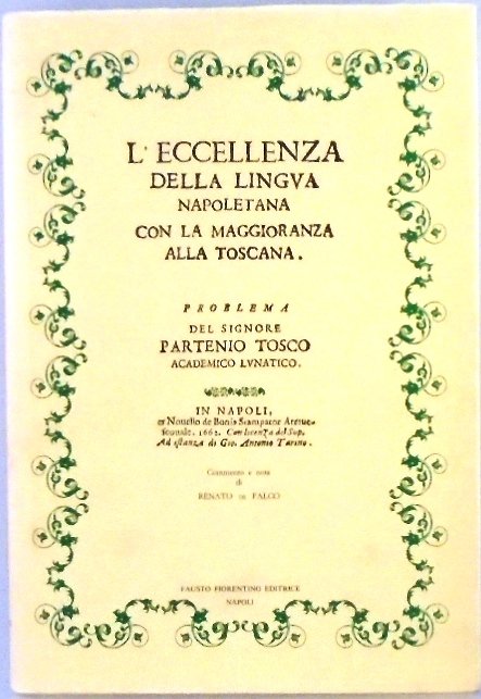 L`ECCELLENZA DELLA LINGUA NAPOLETANA CON LA MAGGIORANZA ALLA TOSCANA A cura di Renato de Falco. Prefazione di A. Altamura.