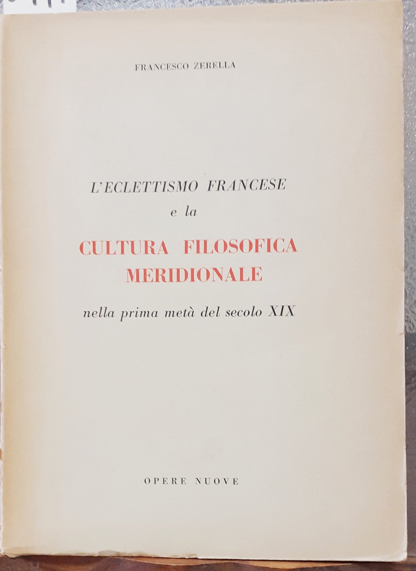 L'ECLETTISMO FRANCESE E LA CULTURA FILOSOFICA MERIDIONALE NELLA PRIMA META' DEL SECOLO XIX.