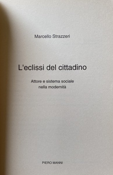 Titolo: L'eclissi del cittadino: attore e sistema sociale nella modernità