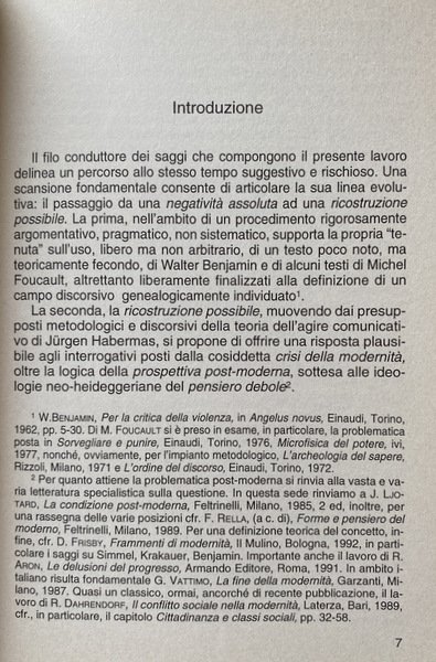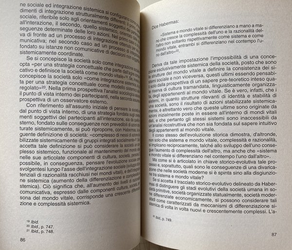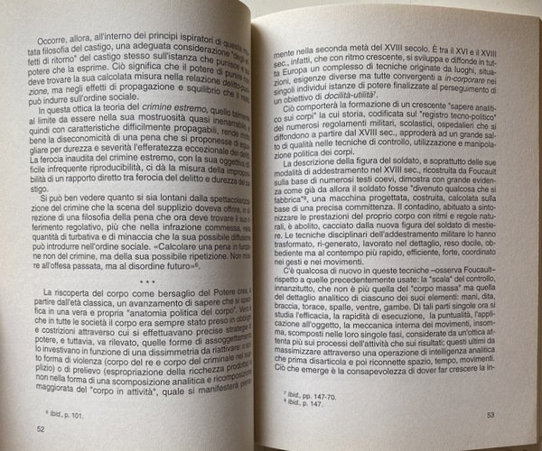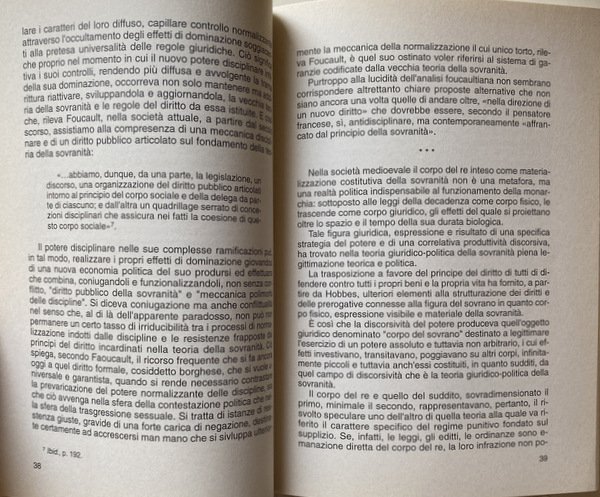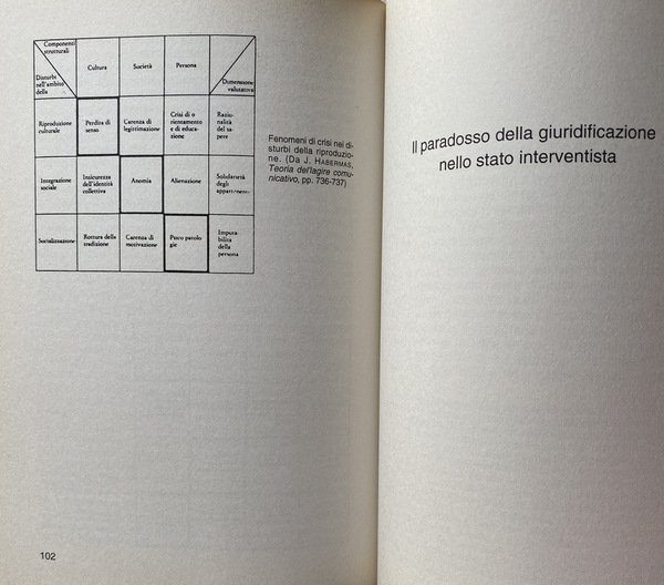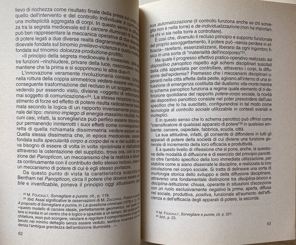 Soggetti: Scienze politiche, Diritto, Sociologia, Filosofia, Sovranità, Modernità, Stato sociale, Diritti politici e civili, Cittadini, Cittadinanza, Rappresentanza, Politica, Società disciplinari, Antropologia, Opere generali, Saggistica, Riferimento, Consultazione, Bibliografia, Studi culturali, Governo, Controllo politico, Libertà, Sorveglianza, Istituzioni, Schiavitù, Teorie filosofiche, Violenza, Potere, Emancipazione, Comunicazione, Patologie sociali, Devianza, Mondi vitali, Sfera pubblica, Interventismo, Giuridificazione, Teoria, sociale, Strategie punitive, Creazione giuridica, Giurisprudenza, Heidegger, Postmodernismo, Pensiero debole, Critica, Microfisica, Gianni Vattimo, Simmel, Kracauer, Aron, Progresso, Dahrendorf, Conflitti, Lotta di classe, Forza fisica, Monopolio, Guerra, Legittimità, Sistemi giuridici, Democrazia, Tecnologia, Norme, Regole, Agire comunicativo, Ontologia negativa, Carcere, Sorveglianza, Bentham, Reclusione, Panopticon, Corpo sociale, Vita, Morte, Crimine, Criminalità, Ordine sociale, Punizione, Punire, Ricchezza, Espropriazione, Soldato, Prova, Tortura, Giustizia, Hobbes, Leviatano, Borghesia, Sovrano, Sudditi, Relazioni sociali, Lavoro, Welfare, J. Alber, Sindacati, Luhmann, Famiglia, Scuola, Formazione, élites, Gunter Teubner, Alienazione, Anomia, Razionalità, Integrazione, Identità, Cultura, Personalità, Nietzsche, Horkheimer, Adorno, Castoriadis, Bataille, Derrida, Libri Vintage Fuori catalogo, Raccolta di Saggi, Political sciences, Law, Sociology, Philosophy, Sovereignty, Modernity, Social state, Political and civil rights, Citizens, Citizenship, Representation, Politics, Disciplinary societies, Anthropology, General works, Non-fiction, Reference, Consultation, Bibliography, Cultural studies, Government, Political control, Freedom, Surveillance, Institutions, Slavery, Philosophical theories, Violence, Power, Emancipation, Communication, Pathologies, Deviance, Vital worlds, Public sphere, Interventionism, Legalization, Theory, Punitive strategies, Legal creation, Jurisprudence, Postmodernism, Weak thinking, Criticism, Microphysics, Progress, Conflicts, Class struggle, Physical strength, Monopoly, War, Legitimacy, Legal systems, Democracy, Technology, Norms, Rules, Communicative acting, Negative ontology, Prison, Surveillance, Prison, Social body, Life, Death, Crime, Crime, Order, Punishment, Punish, Wealth, Expropriation, Soldier, Trial, Torture, Justice, Leviathan, Bourgeoisie, Sovereign, Subjects, Relations, Work, Unions, Family, School, Education, Alienation, Anomy, Rationality, Integration, Identity, Culture, Personality, Out of print books, Collection of essays