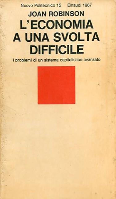 116 p. ; 18 x 11 cm. Nuovo politecnico, 15. In questo saggio di economia politica, scritto nella tipica vena del radicalismo filosofico anglosassone, Joan Robinson esamina con profondo rigore teorico di fondo e forte consapevolezza critica taluni problemi e contraddizioni di fondo del sistema economico capitalistico. Brossura editoriale, coperta a colori (b/n e roisso) in cartoncino flessibile plastificato lucido, titolo impresso al piatto e al dorso. Qualche segno del tempo alla coperta, al taglio e alle pagine interne (ingiallimento della carta e fioriture), per il resto libro integro. Codice libreria 6633.