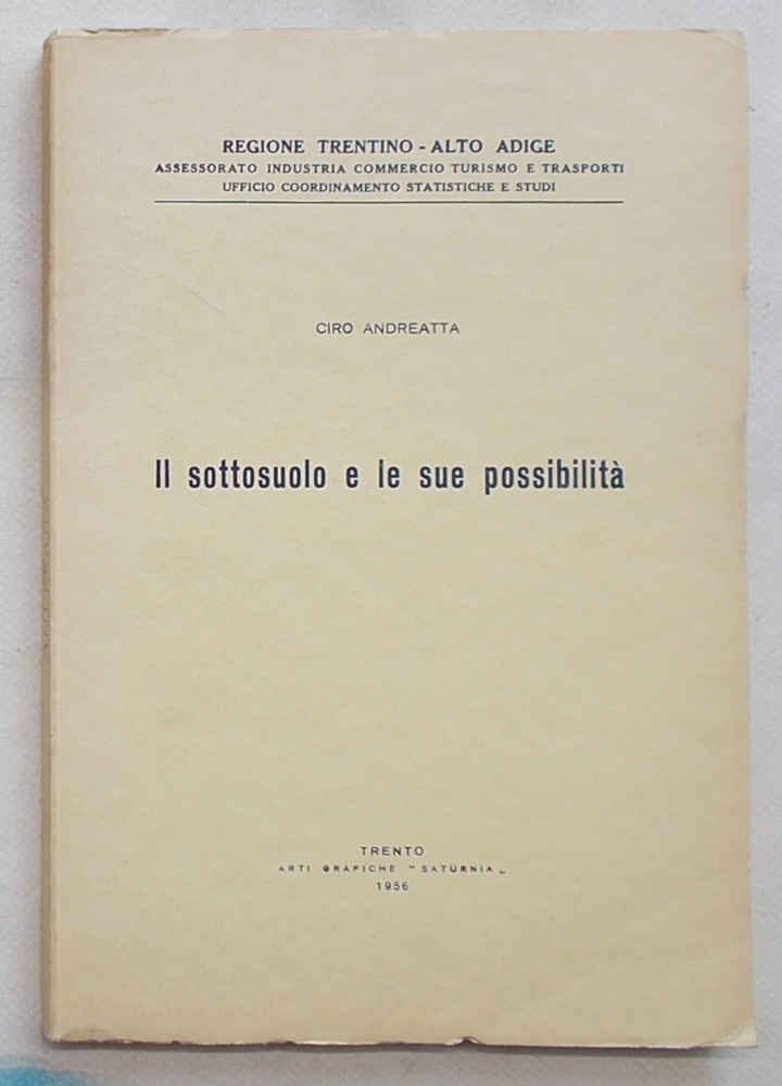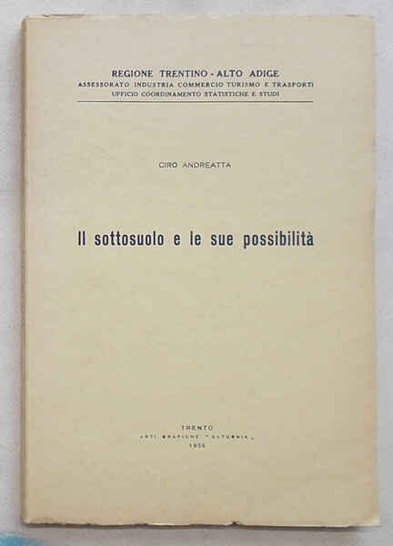 In 8° (cm. 24,5 x 16,5); pagg. 93; con 1 carta carta litologico-mineraria del Trentino Alto Adige più volte ripieg. f.t., numer. tavole fotograf. f.t. e alcune cartine e disegni n.t.; leggera cartonatura origin. VG.