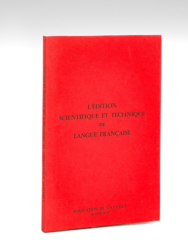 1 vol. in-8 br., Publication de l'A.U.P.E.L.F., Editions C. Klincksieck, 1972, 158 pp. Titre complet : L'édition scientifique et technique de langue française [ Actes du séminaire organisé par l'Association des universités partiellement ou entièrement de langue française (AUPELF) et l'Union des éditeurs de langue française (VELF) Orléans, 21-22 octobre 1971 ] Bon exemplaire