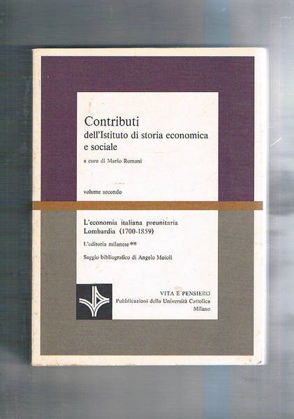 L'editoria milanese, saggio bibliografico di Angelo Moioli. Contributi di storia economica e sociale. Vol. 2° de l'economia italiana preunitaria Lombardia (1700-1859).
