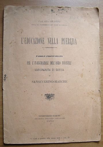 L'educazione nella puerizia. Parole pronunziate per l'inaugurazione dell'asilo infantile Margherita di Savoia in Sanseverino-Marche.
