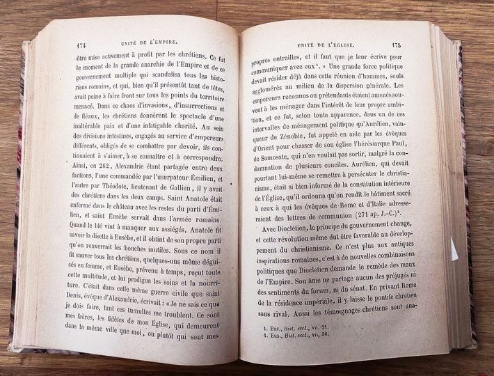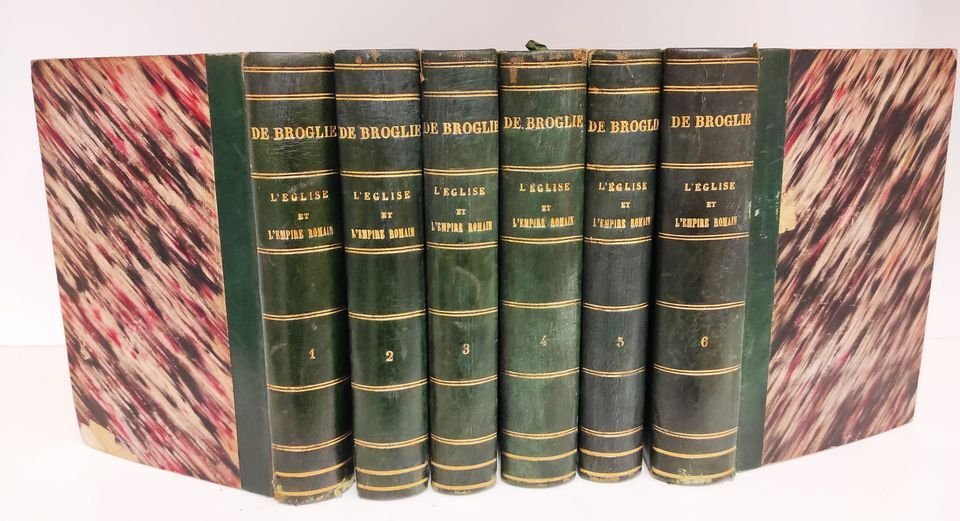 3 parties en 6 volumes : 1ère partie Règne de Constantin - 2° partie : Constance et Julien - 3° partie : Valentinien et Théodose. 471 + 452 + 452 + 506 + 464 + 601 pages. Avec tableau alphabétique et analyse générale. Reliure demi-cuir vert avec titre et décorations au dos comme indiqué sur les photos. Molto buono (Very Good) .