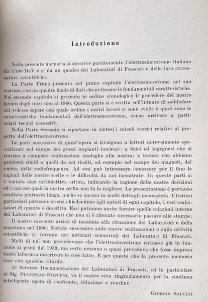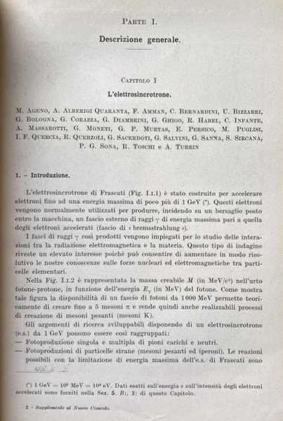 Soggetti: Fisica Nucleare, Laboratori nucleari, M. Ageno, Elettronica, Elettrodinamica quantistica, QED, CNEN, Synchrotrons, Roma-Sanità, Alberigi, Amman, Gianfranco Corazza, Giorgio Ghigo, Giancarlo Sacerdoti, Bernardini, Bizzarri, Cortellessa, Laboratori di Frascati, Diambrini, Massarotti, Lucio Mezzetti, Moneti, Murtas, Persico, Puglisi, Italo Federico Quercia, Ruggiero Querzoli, Salvini, Sanna, Toschi, Frullani, Cortellessa, Turrin, Laboratorio speciale, Fisici, Enrico Fermi, Energia, Successi, Storia, Scienziati, Scienze applicate, Maestri, Allievi, Studi scientifici, Acceleratori, Protosincrotroni, Camere a scintilla, Contatori, Gruppi, Lavorano, Camere a bolle, Apparecchiature, CERN, Ginevra, Macchine nucleari, Protoni, Forze nucleari, Atomi, Particelle subatomiche, Risonanze, Klystron, Generatori, Risonanza, Mesone, Elementari, Reattore, Reattori veloci, Applicazioni, Attività, Industria, Produzione, Realizzazione, Combustibile, Tecnologie, Ciclotrone superconduttore, Tandem, MeV, Elettronvolt, Potenza, Ansaldo, Magnete, Elettricità, Energia elettrica, Ducati, Galilei, Compagnia nazionale, Produzione, Edoardo Amaldi, Bruno Rossi, Firenze, Combustibili fossili, Fusione nucleare, Fissione, Picco di Hubbert, Rasetti, Nuclei, Wick, Raggi, Impianti, Panisperna, Temperatura, Reazione, Radiazioni, Radioattività, Chicago, Americani, Collezionismo, Da collezione, Libri Vintage Fuori catalogo, Anni Cinquanta, Anni Sessanta, Dopoguerra, Libri rari, Pisa, Alimentazione, Funzionamento, Controlli, Bibliografia, Storia, Bersagli, Fascio, Collaudi, Iniezione, Gas, Montaggio, Misure, Modelli, Testate, Convertitore, Vuoto, Elettrodi, Radiofrequenza, RF2, Prestazioni, Van de Graaf, Laboratorio criogenico, Problemi, Soluzioni, Tecnica, Studi sperimentali, Calcoli teorici, Costruzione, Stanislao Stipcich, Elettroni, Fotoni, LNF, 1954, 1.1 GeV, Acceleratore di particelle, Prototipo AdA, DAΦNE, DAFNE, Raggi gamma polarizzati, Bruno Touschek, BTF, Beam Test Facility, Comunità di ricerca, Rarità, Foto d'epoca, Nuclear Physics, Nuclear Laboratories, Electronics, Quantum Electrodynamics, Frascati Laboratories, Special Laboratory, Physics, Energy, Successes, History, Scientists, Applied Sciences, Masters, Students, Scientific Studies, Accelerators, Protosynchrotrons, Spark Chambers, Counters, Groups, They work, Bubble chambers, Equipment, Geneva, Nuclear machines, Protons, Nuclear forces, Atoms, Subatomic particles, Resonances, Generators, Resonance, Meson, Elementary, Reactor, Fast reactors, Applications, Activities, Industry, Production, Implementation, Fuel, Technologies, Superconducting cyclotron, Electron volts, Power, Magnet, Electricity, National company, Production, Florence, Fossil Nuclear fusion, Fission, Rays, Plants, Temperature, Reaction, Radiation, Radioactivity, Americans, Collectables, Collectible, Out of print books, Fifties, Sixties, Postwar, Power supply, Operation, Controls, Bibliography, History, Targets, Tests, Injection, Assembly, Measurements, Models, Heads, Converter, Vacuum, Electrodes, Radio frequency, Performance, Cryogenic laboratory, Problems, Solutions, Technique, Experimental studies, Theoretical calculations, Construction, Electrons, Photons, Particle accelerator, Polarized gamma rays, Research community, Rarity, Vintage photo, Emilio Segrè