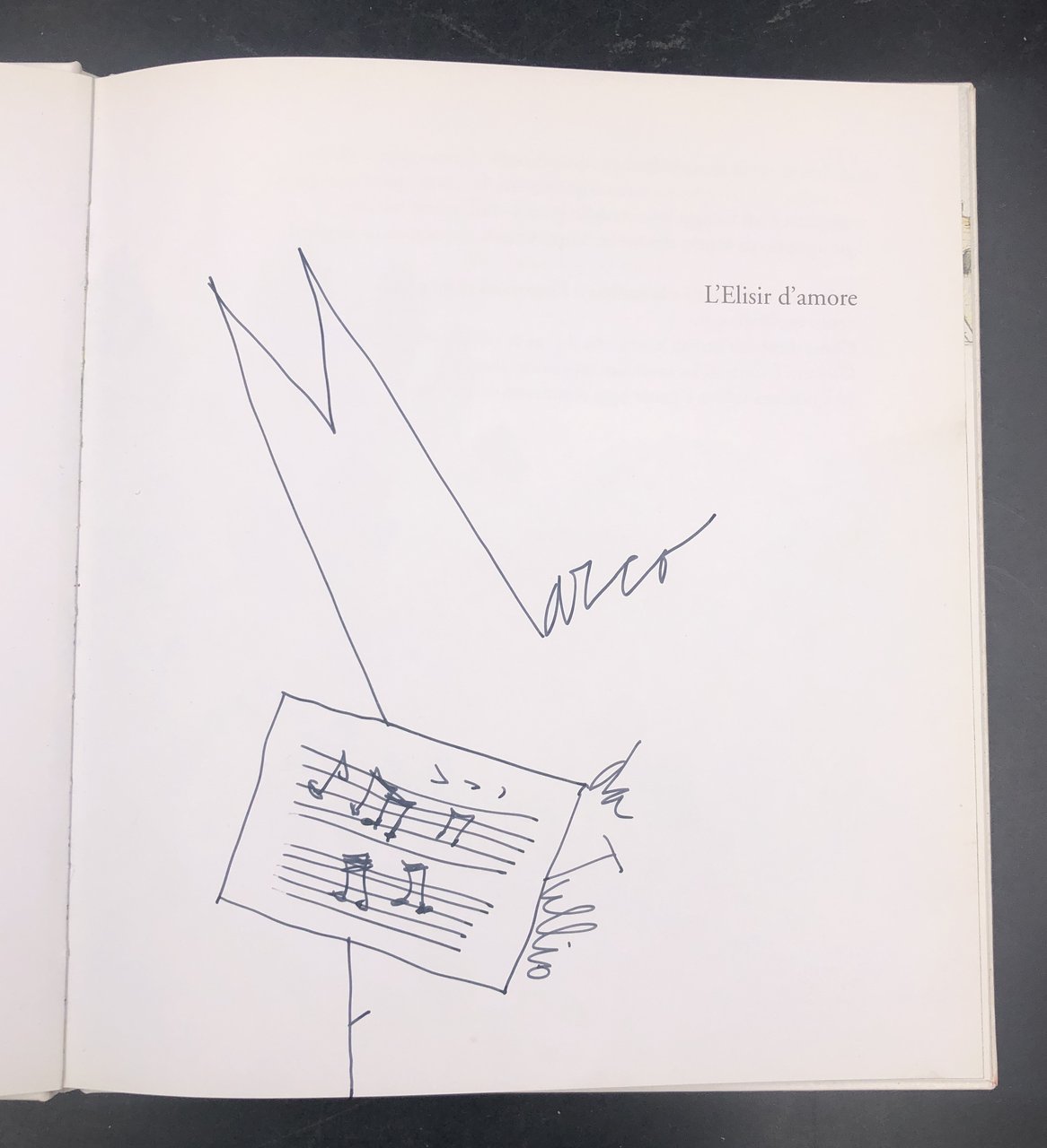 L'ELISIR d'AMORE. Disegnato da Tullio PERICOLI, raccontato d Piro GELLI. Con un DISEGNINO-DEDICA ORIGINALE di Tullio PERICOLI all'occhiello.