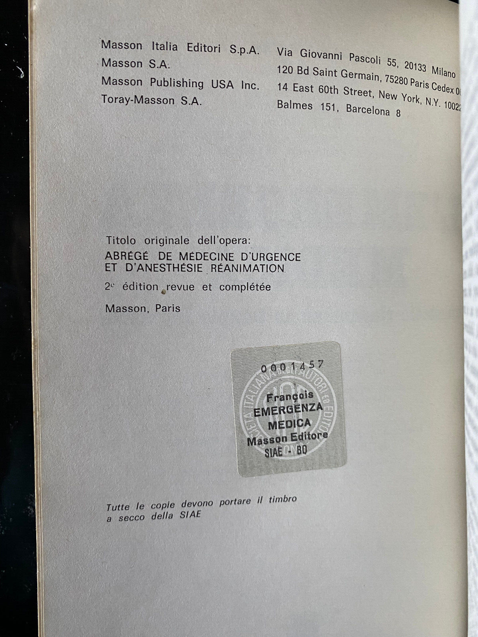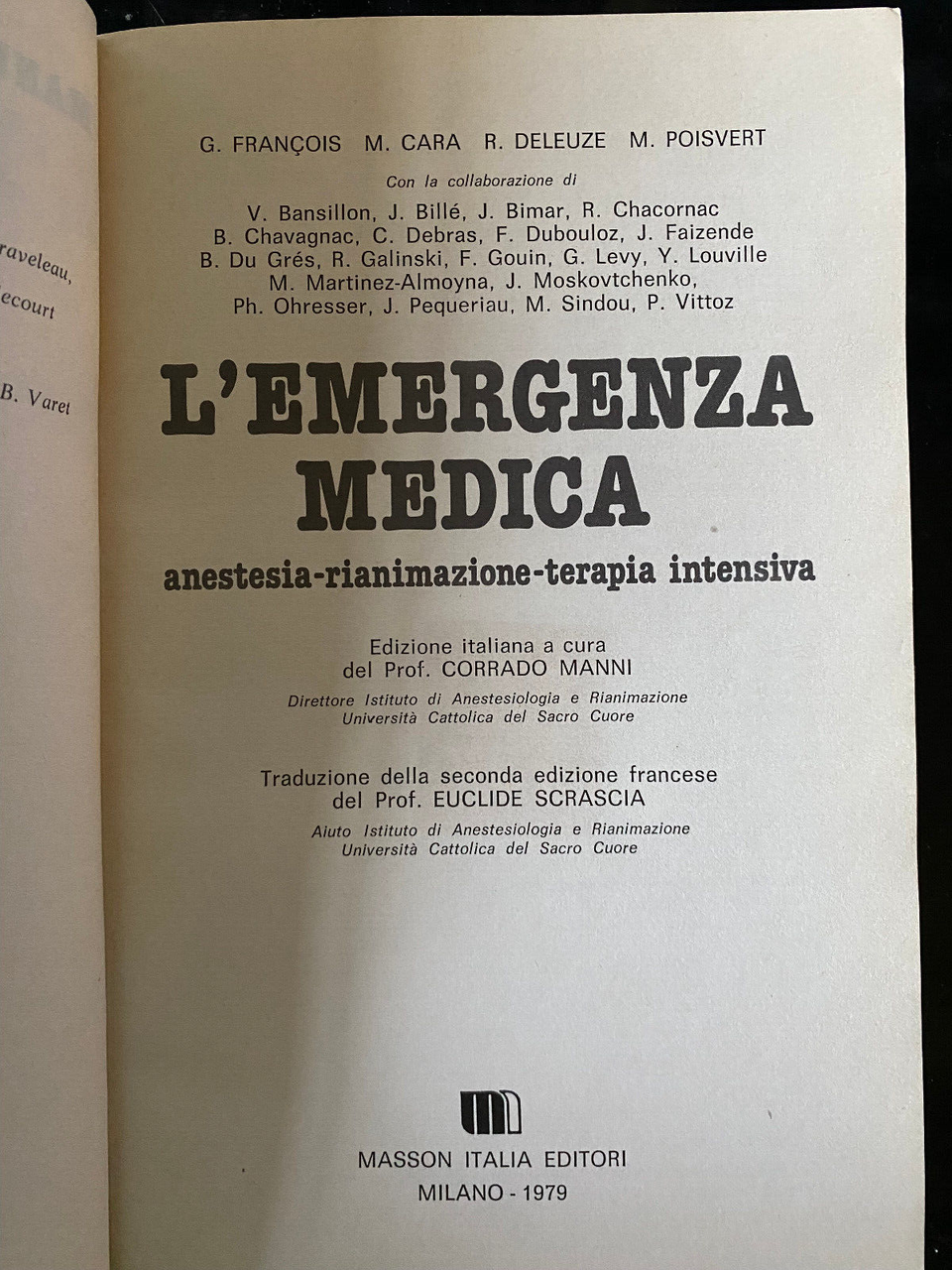 L'emergenza medica. Anestesia rianimazione terapia intensiva, Masson, 1979
