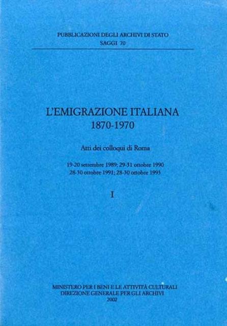 L'emigrazione italiana, 1870-1970. Atti dei colloqui di Roma. 19-20 settembre 1989; 29-31 ottobre 1990; 28-30 ottobre 1991; 28-30 ottobre 1993.