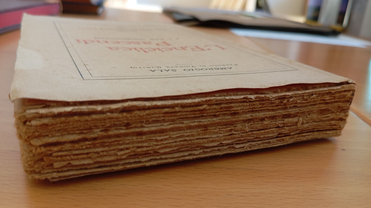 Copertina con segni di usura, macchie e fioriture e qualche sbiadimento. Dorso ancora bene leggibile, tagli fortemente scuriti, pagine ingiallite e con fioriture. Legatura nel complesso buona buona. Bella rilegatura, nel complesso un'ottima copia
