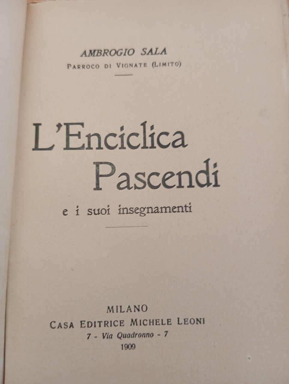L'enciclica Pascendi e i suoi insegnamenti, Ambrogio Sala, Michele Leoni, 1909