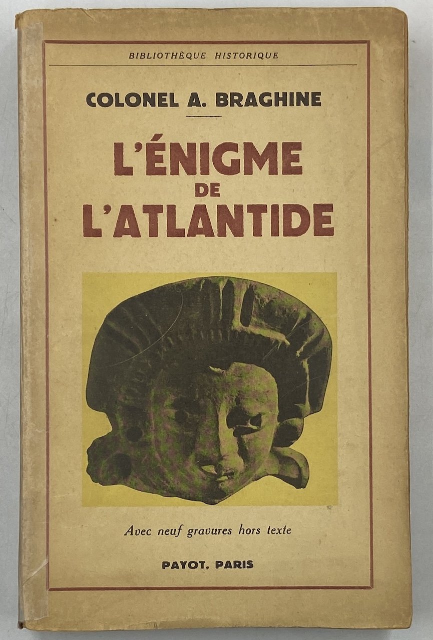 Brossura editoriale illustrata, cm 14x23, pp14x23, pp 318 (2), alcune tavole in nero. Modesto esemplare da studio, riparazione con nastro adesivo di carta sulla cerniera anteriore, strappo sulla posteriore, pagine brunite per l’acidità della carta, piccoli difetti sulla brossura, timbro ex-libris sulla prima pagina. Un classico della ricerca atlantiana, ricco di indagini archeologiche, filologiche, linguistiche e geologiche sulle civiltà precolombiane, africane, europee, gli Egizi, la lingua basca ecc.