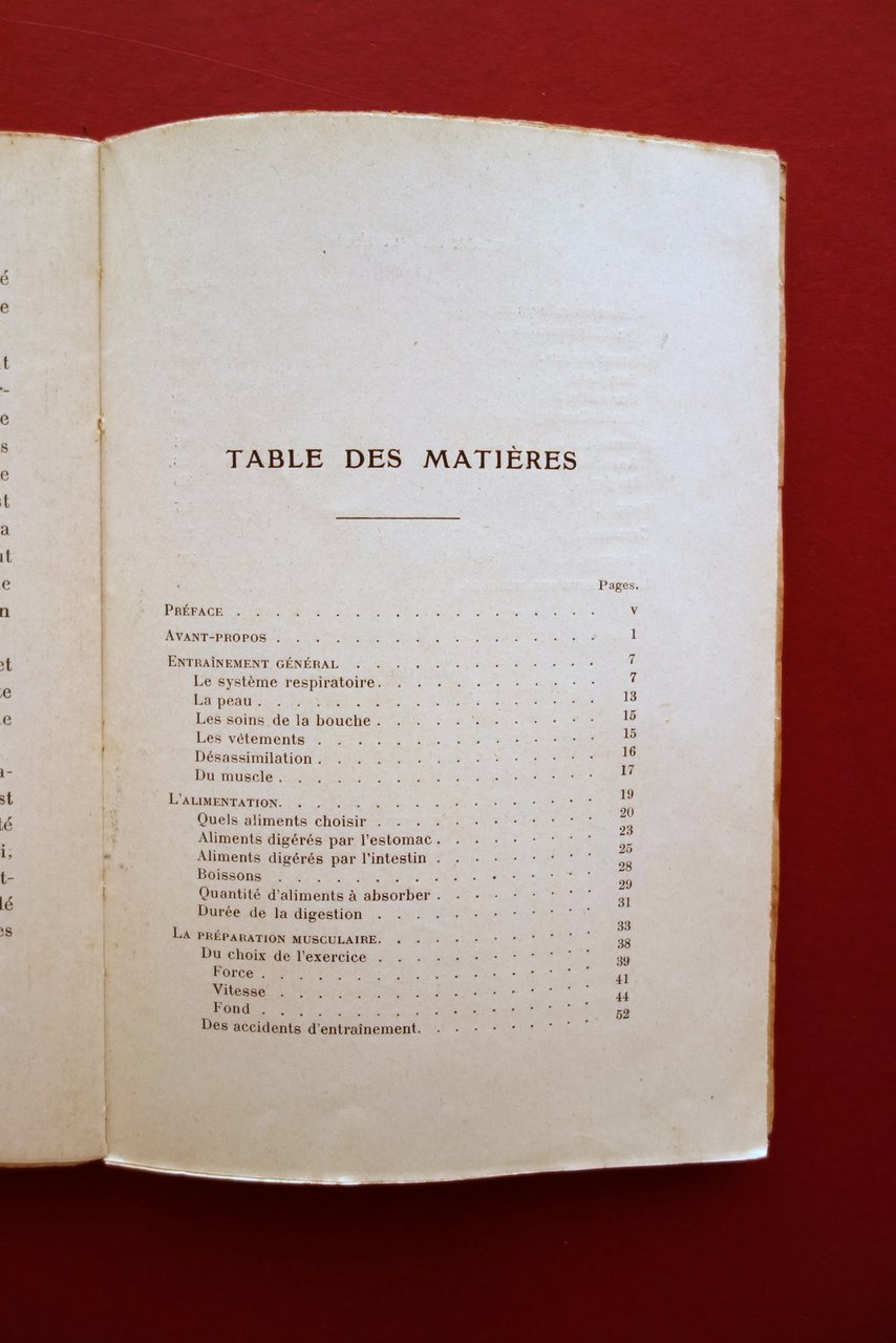 E. Weber, L'Entrainement à tous les sports préface de Pierre Faillot Editions Nilsson, Paris, s. d. ma primi anni del '900; cm 19x13; pp. VIII-154 con varie ill. fotografiche in b/n nel t.; brossura ed. ill. in b/n. Edizione francese. Condizioni di conservazione Buone condizioni con tracce d'uso, lievemente sgualcita ai margini e agli angoli; lievi / leggerissime bruniture e aloni. Interni buoni. Ampia rassegna di discipline sportive e dei metodi corretti per praticarle (vedi foto indice). SETT15.L24009 N