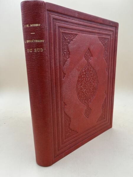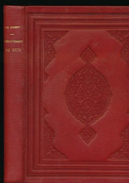 Editions Baconnier 1934 Alger Editions Baconnier, 1934. In-4 relié pleine basane maroquinée rouge. Plats estampés à froid d'un motif arabisant. Dos lisse avec titre doré. Tête marbrée rouge. Couverture conservée. 287 pages + photos. Edition originale. Tirage limité numéroté à 525 exemplaires, celui-ci n° 347 sur Pur Fil Lafuma. Très belle reliure.