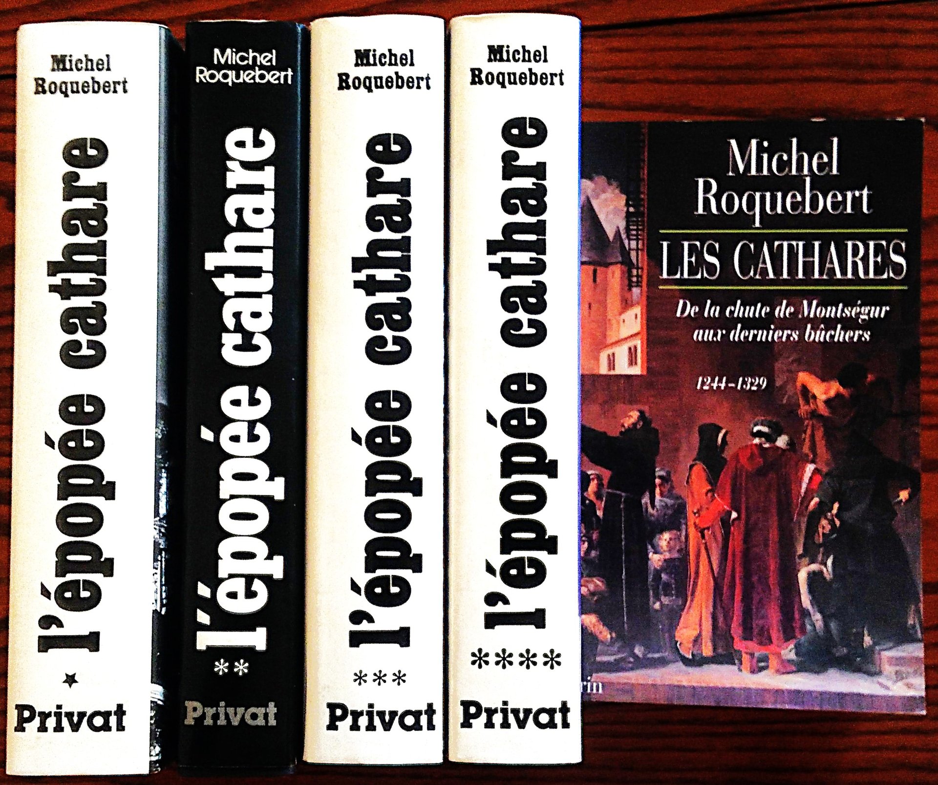 Touluse, Privat - Perrin, 1986-1998. 8°, 5 volumi, legature editoriali, sovracoperte per i primi quattro, brossura originale il quinto.. Tomo 1 - 1198-1212: l'Invasion, pp. 595, illustrazioni ne testo e 16 tavole fuori testo; Tomo 2 - 1213-1216: Muret ou la depossession, pp. 487, illustrazioni nel testo e 32 tavole fuori testo; Tomo 3 - 1216-1229: Le Lys et la Croix, pp. 530, illustrazioni nel testo e 12 tavole fuori testo; Tomo 4 - Mourir a Montségur, pp. 512, illustrazoni nel testo e 12 tavole fuori testo. 5 - De la chute de Montsegur aux derniers buchers 1244-1329, pp. 578. Minime tracce d'uso, un lievissimo alone al margine bianco delle ultime carte del quinto volume, belle copie.