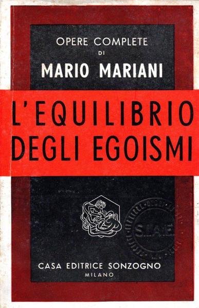 L'equilibrio degli egoismi, edizione 1956, pp. 240, formato 12 x 18. <BR>Copertina morbida di colore nero e rosso con titoli in bianco e nero al piatto anteriore e in nero sul dorso.<BR>Buone condizioni.