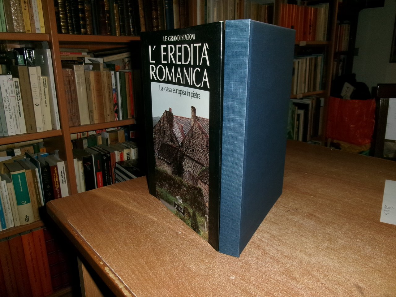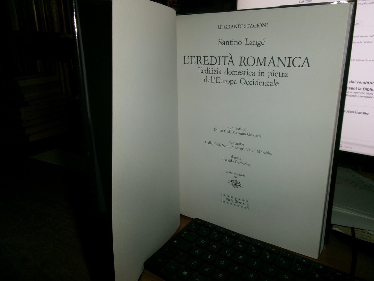 Santino Langé. Milano, Edizione speciale per Jaca Book, 1995. L' Eredità Romanica. L' Edilizia domestica in pietra dell' Europa Occidentale. Testi di Duilio Citi, Massimo Guidetti. In-4°, tela edit. bleu con sovracopertina ill. a col. 286 pp. con numerose illustrazioni in tavole a colori n.t. e disegni di Osvaldo Garbarino. Come nuovo. Uff. C - III - 3 - 2