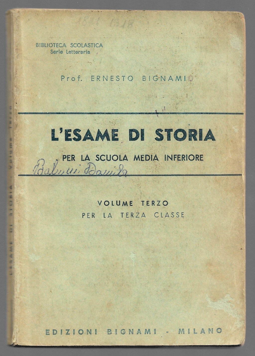 Libro vintage in-16°, brossura di pagg 149, Milano 1963. Storia, collana Biblioteca scolastica. Firma di appartenenza, segnetti a matita nel testo. Ordinario segno del tempo.