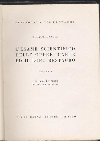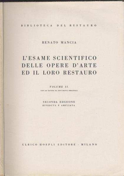 L'esame scientifico delle opere d'arte ed il loro restauro Vol. Primo e vol. secondo