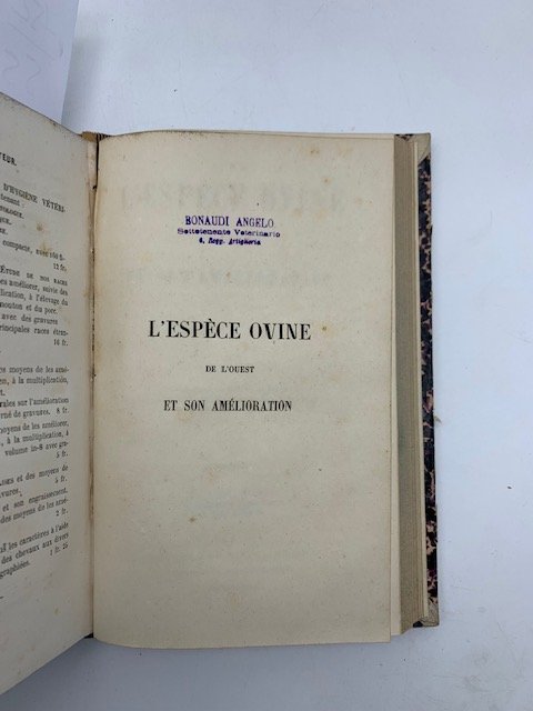 In 16 (cm 11 x 17,5), pp. VIII + 158 + (2). Timbri di ex possesso all'occhietto, al frontespizio e alla prima pagina. Brossura rifatta con carta d'epoca. Edizione originale di questo saggio di zootecnia sul miglioramento della razza ovina.