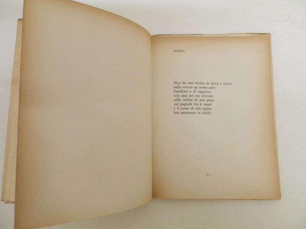16°, mm 160x120, pp. 64, (8), brossura con sovracoperta editoriale protetta da velina, ottimo stato di conservazione, dorso e pagine marginalmente ingiallite, cartiglio di biblioteca privata alla prima carta bianca, ritratto dell'autore in antiporta disegno di Bruno Cassinari, annotazione in matita alla sguardia posteriore. Tiratura limitata in 300 esemplari numerati e 21 esemplari stampati su carta uso mano distinti con le lettere dell'alfabeto, la presente copia è la numero 229. Conservato allegato all'interno catalogo autunno inverno 1949-50 delle Edizioni della meridiana.. *** TUTTI I NOSTRI LIBRI SONO VISIBILI PREVIO CONTATTO MAIL O TELEFONO NELLA NUOVA SEDE DI MILANO: LIBRERIA COSMOPOLIS, VIA JOMMELLI, 22. ***