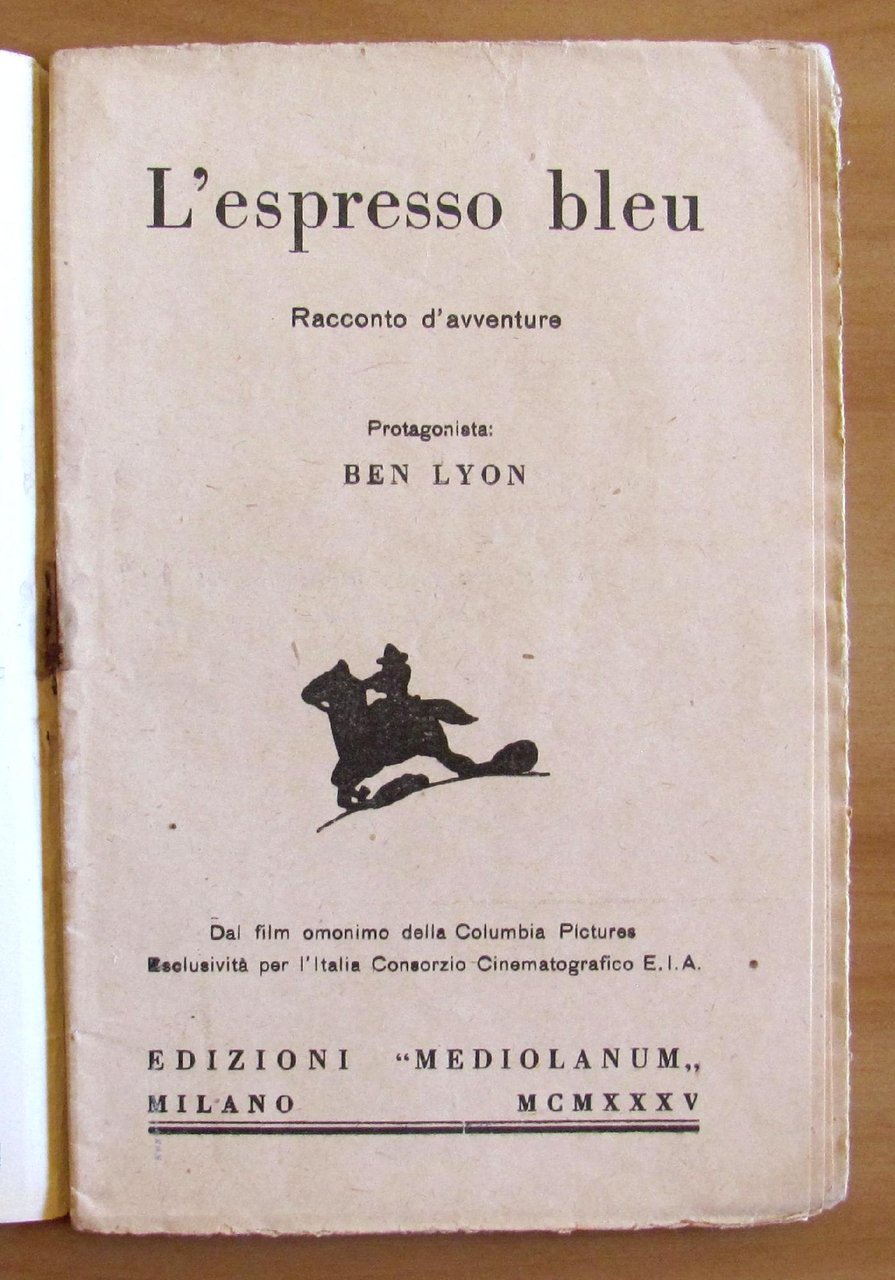 Protagonista Ben Lyon con 3 illustrazioni fotografiche in b/n n.t. a piena pagina dal Film omonimo della Columbia Pictures. Edizioni Mediolanum - Milano, 1935. Brossura editoriale con copertine non fermate dalla spilla ma tutto perfettamente integro. 13x19,5; pp.32. Raro, Ottimo stato. , Molto buono (Very Good)