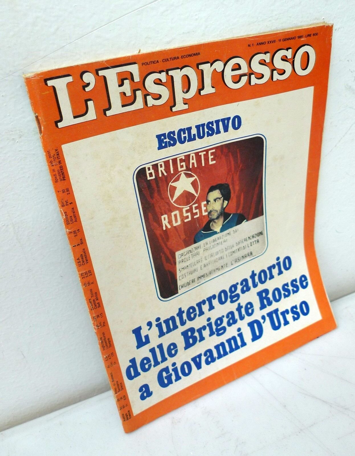 L'ESPRESSO n.1 11 gennaio 1981[Brigate Rosse,interrogatorio a Giovanni D'Urso