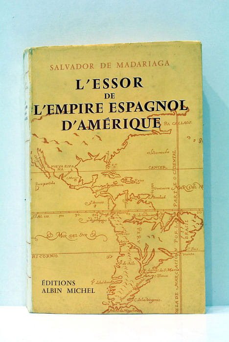 490 pages. 5 feuillets. Carte et photographies en noir et blanc hors-texte. (21x14cm). Brcohé. Couverture illustrée légèrement bruni et salie. Coins et coiffes émoussés. Publié en 1955 à Paris, cet ouvrage de Salvador de Madarida, traduit par Marcelle Sibon, explore l'expansion de l'Empire espagnol en Amérique. En se penchant sur les stratégies, les réussites et les échecs de l'Espagne coloniale, le texte offre un éclairage sur les fondements des sociétés contemporaines américaines et leurs liens persistants avec l'Europe. L'analyse historique de Madarida permet ainsi de mieux comprendre les enjeux politiques et culturels qui façonnent encore aujourd'hui les relations entre continents. Papier légèrement brunie avce petites taches sans gravité. Illustrations, carte et photographioes en noir et balnc hors-texte.